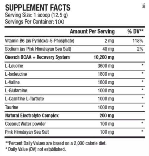 QUENCH BCAA es natural, con gran sabor y libre de azúcar, ideal para los atletas que quieren maximizar la intensidad de sus entrenamientos. Cada scoop tiene más de 10gr totales de aminoácidos que servirán de combustible para los entrenamientos más demandantes.