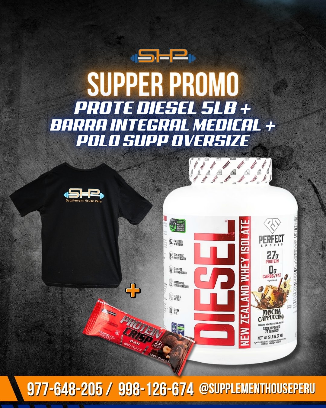 Elige tu proteina DIESEL 5LB + Polo SHP Oversize + tu barra protein CRISP en sabor TRUFA.